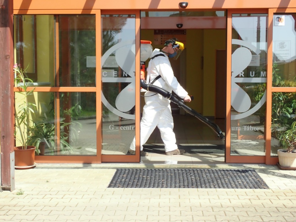 Už na Zelený čtvrtek Technické služby Tábor s pomocí motorového rosiče vydezinfikovaly vstupní prostory a vestibuly všech pečovatelských domů ve městě a domova pro seniory G-centrum. O další realizaci dezinfekce veřejných prostor rozhodne krizový štáb města.