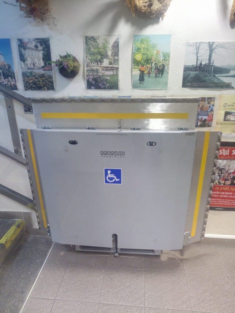 Na veřejném WC na Žižkově náměstí byla instalována nová šikmá schodišťová plošina v plně automatckém provedení.