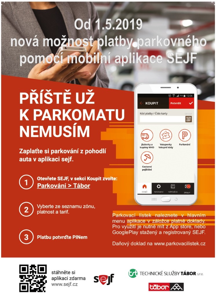 V Táboře je nově možné platit za parkování také z mobilu, a to pomocí aplikace SEJF. SEJF je aplikace pro chytré telefony umožňující bezpečné, bezkontaktní a bezhotovostní platby. Obyvatelům i návštěvníkům Tábora nabízíme nově moderní a bezkontaktní řešení pro parkování. Jelikož SEJF nabízí velmi jednoduchou cestu k pořízení parkovacího lístku, rozhodli jsme se tuto službu […]